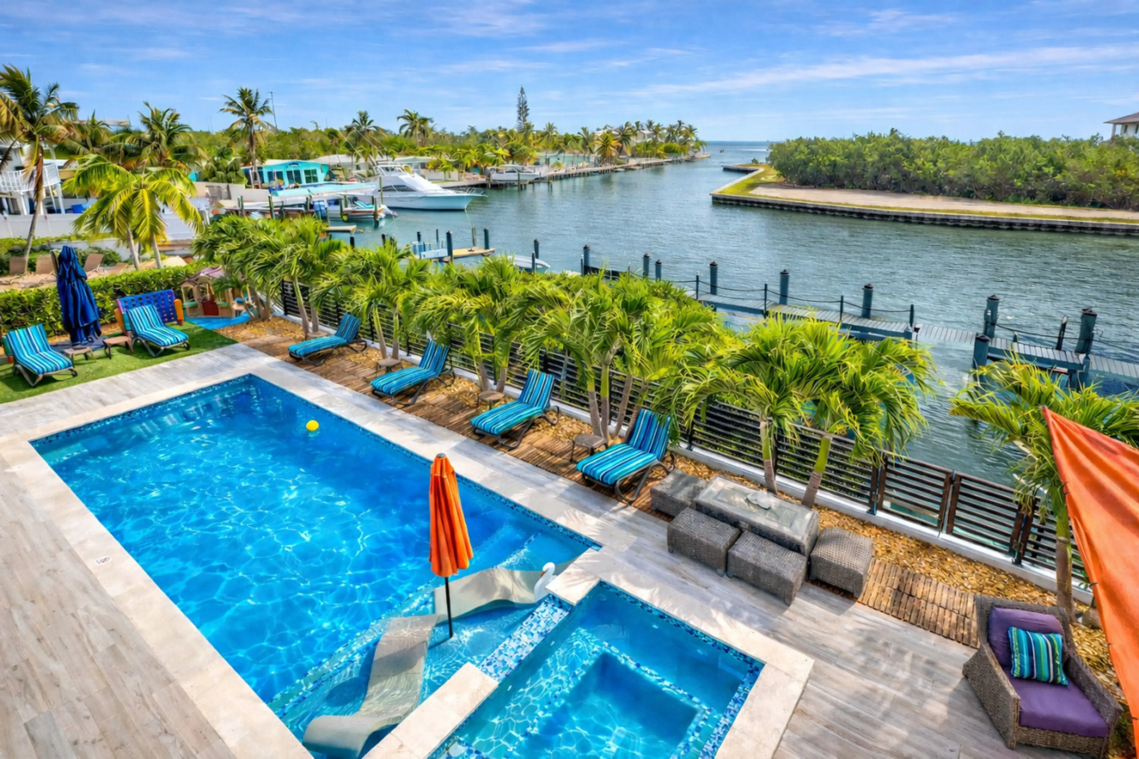 Blue Island Luxury Oceanfront w/75'Dock-Pool & Jacuzzi & Walk to Beach